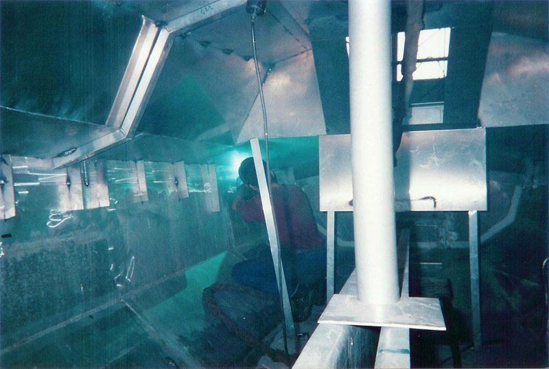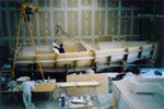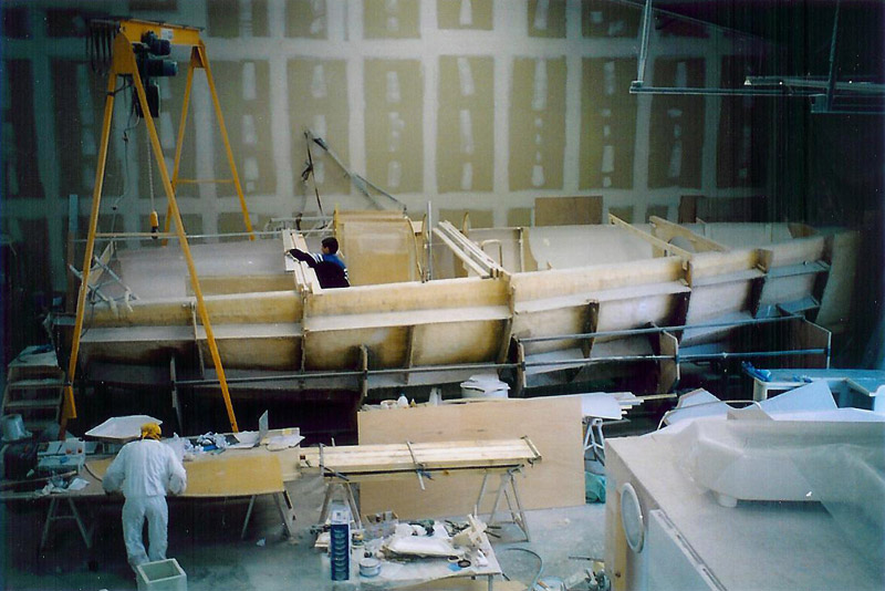 Le moule est soigneusement ciré avant la pose et l’enduction de la fibre de verre par la résine.