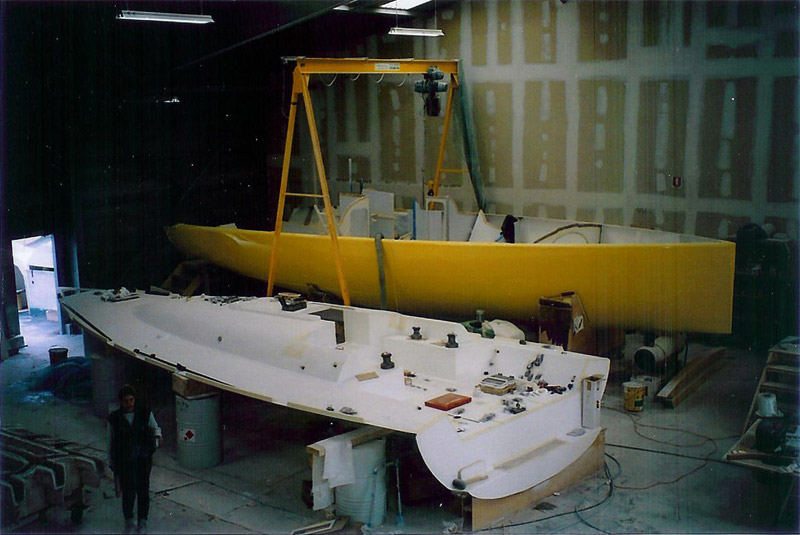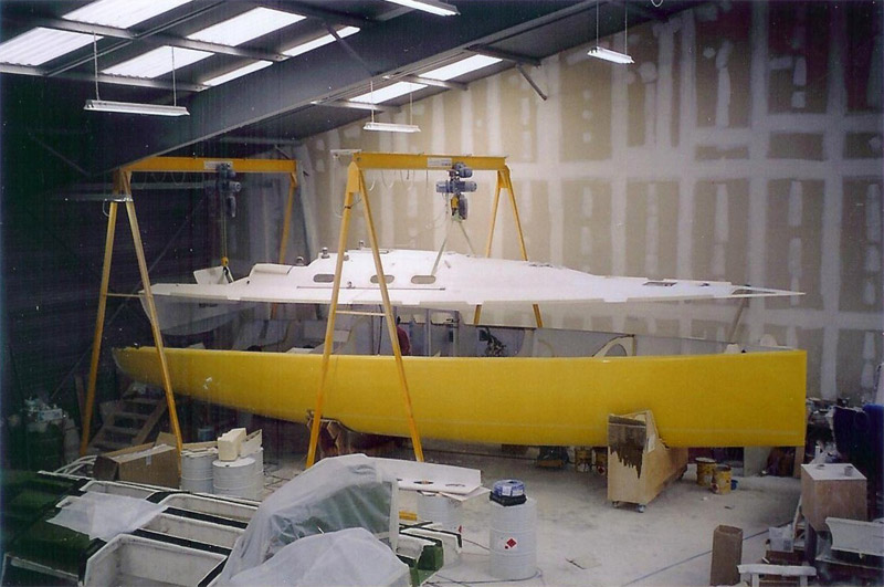 Le pont fraîchement démoulé est accastillé avant même l’assemblage avec la coque.