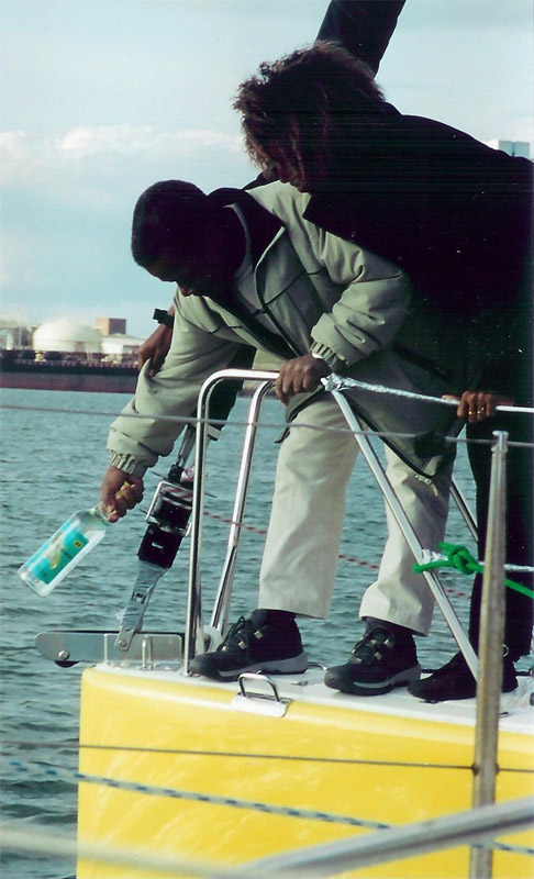 est baptisé à sa mise à l'eau en Bretagne, ma terre natale, par un représentant des pêcheurs de Sainte-luce, ma terre d’adoption,